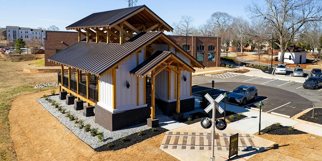 - 300 SF open-walled custom timber structure on a brownfield site for watching trains pass through downtown Duluth, GA.