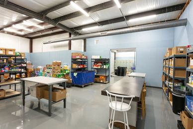 The building scope of work was effectively to strip the existing pre-engineered metal building structure to its frame and then rebuild it while adding multiple small additions. The interior was converted from a millwork shop to approximately 6,000 SF of grocery warehouse and 2,000 SF of administrative offices and community rooms. This includes new finishes and MEPs throughout.