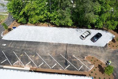 The site redevelopment scope of work included a great deal of site rehabilitation (including removal of overgrowth and trash removal) as well as all new sanitary sewer service (the site had previously been on a commercial septic system). There are two major site retaining walls, water-pervious gravel paver parking spaces, a whole new site perimeter privacy fence, and all new asphalt driveways and parking.