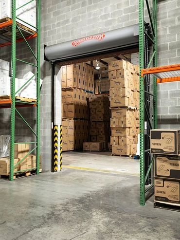 As an option to installing fire sprinklers throughout the entirety of the facility (nominally $250,000) a 3-hour rated CMU firewall was constructed and fusible link, fire-rated coiling overhead doors were installed for fork truck access between the buildings.